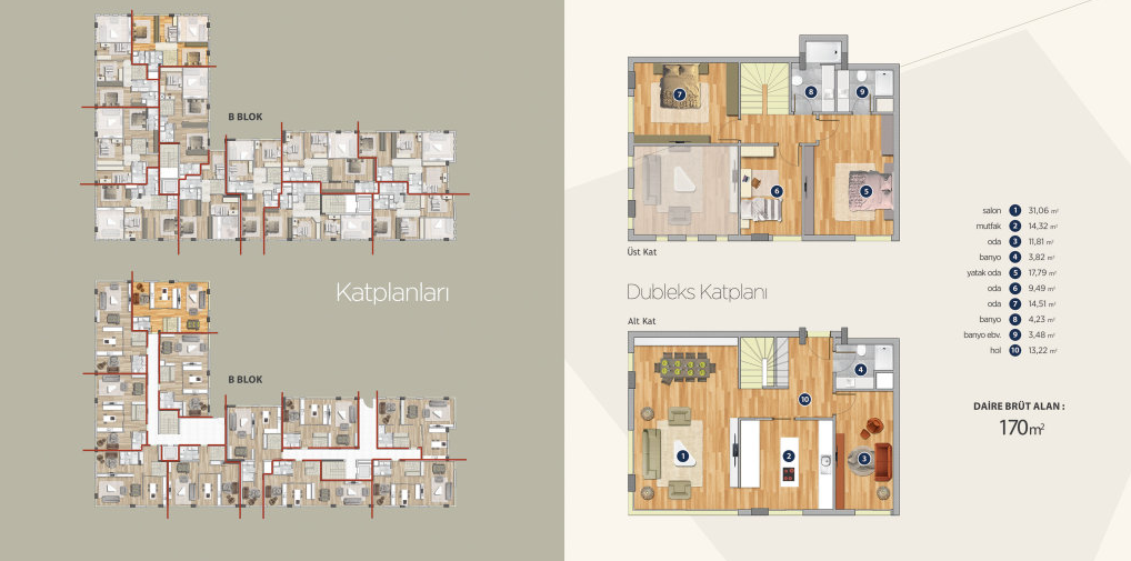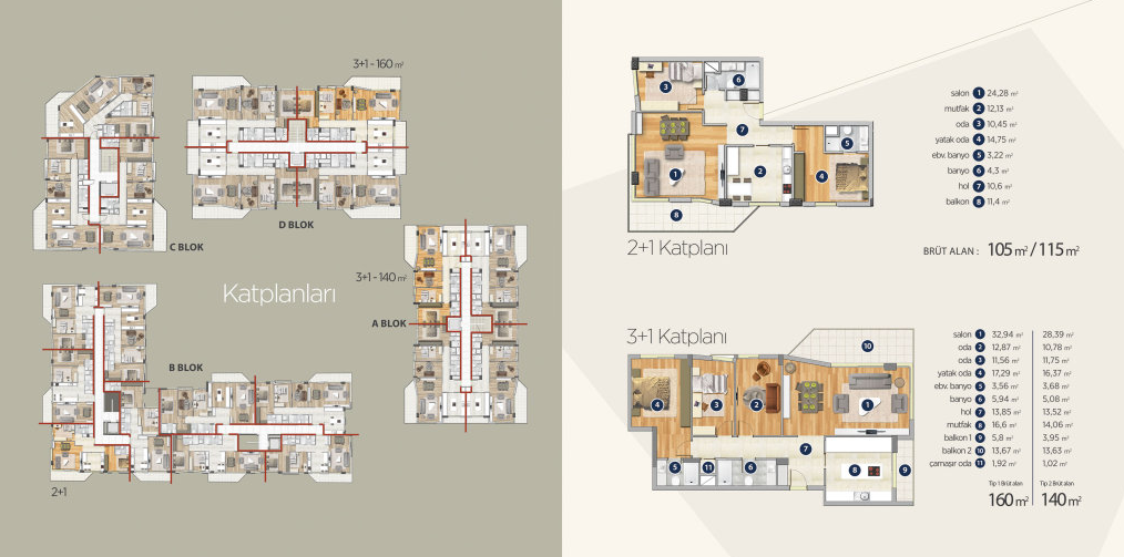 232 Flora projesinde 2+1 daireler 105 ila 115 metrekare, 3+1 daireler 140 ve 160 metrekare, 4+1 dubleks daireler ise 170 metrekare büyüklüklerle dizayn edildi.