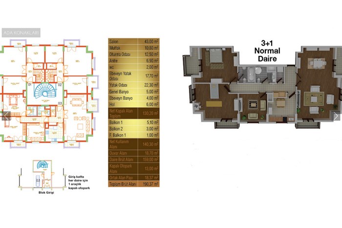 Ada Konakları Projesi Kat Planı ve Kroki Görselleri :