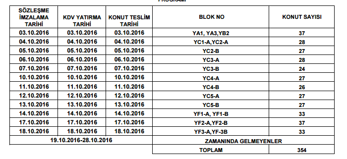 Konutlarını teslim alacak ev sahipleri konut teslim programında belirtilen tarihte gelmeleri gerekiyor. Farklı bir tarihte gelenlerin işlemi o gün konutlarını alacak ev sahiplerinden sonra yapılacak.