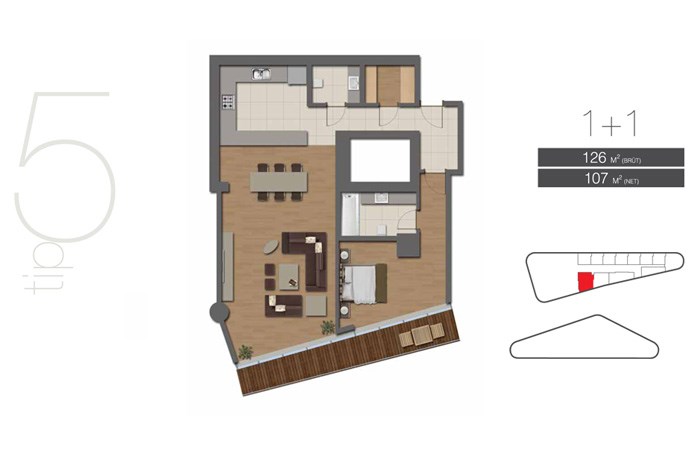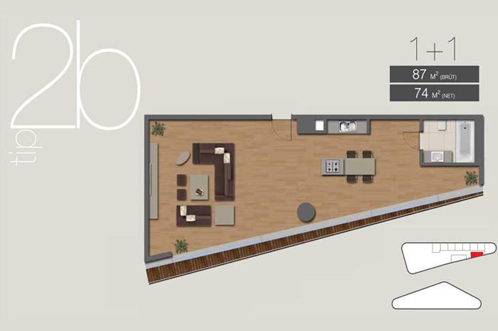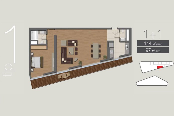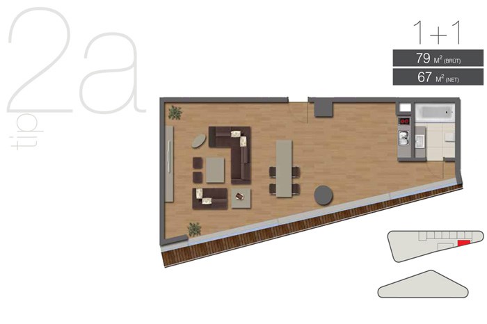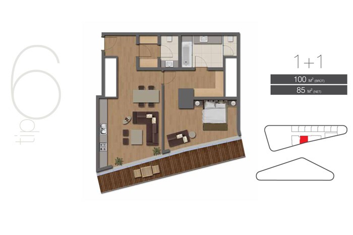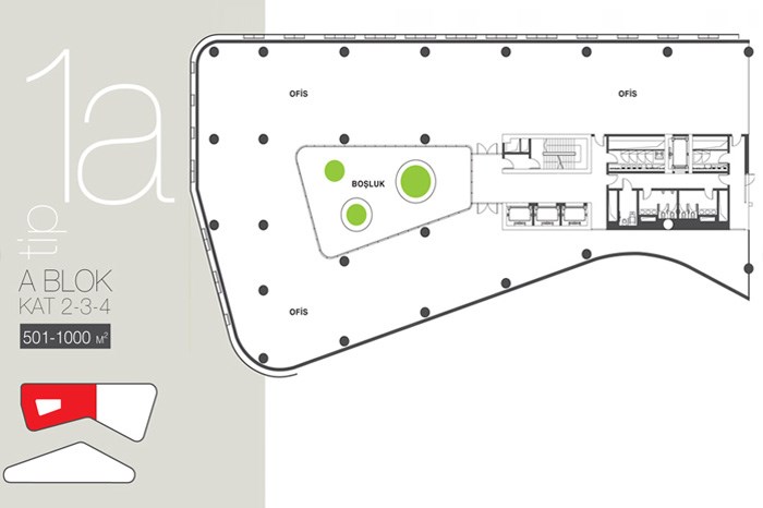 Projede 200 adet ofis ve 42 adet konutta yer alıyor. Tabanlıoğlu Mimarlık tarafından tasarlanan projede 1 oda 1 salon ve 2 oda 1 salon daire seçenekleri bulunuyor.