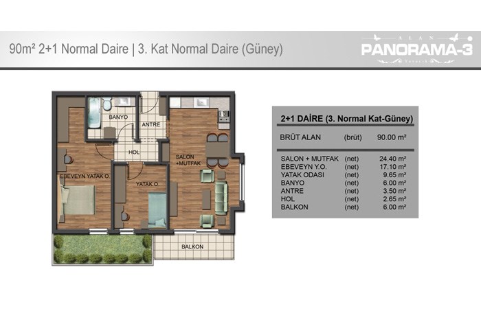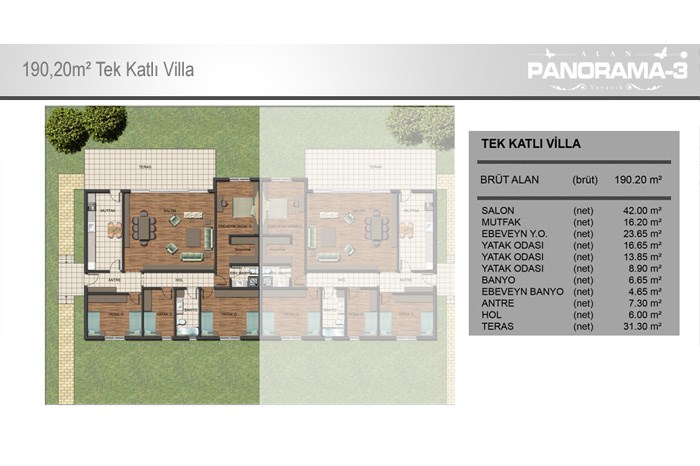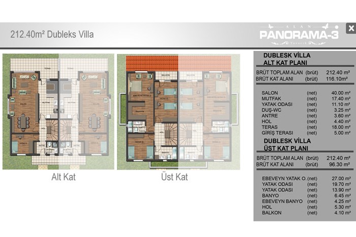 - Alan Panorama 1 ve 2 projelerinin devamı niteliğinde olan Alan Panorama 3 projesinde apartman dairelerinin yanı sıra tek katlı ve dubleks ikiz villalar bulunuyor.