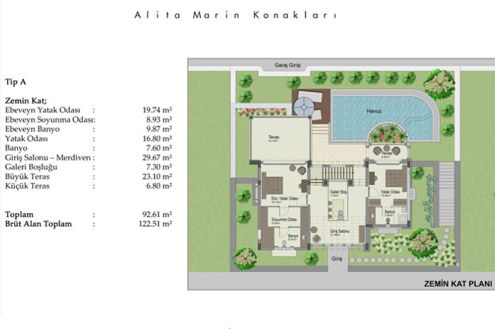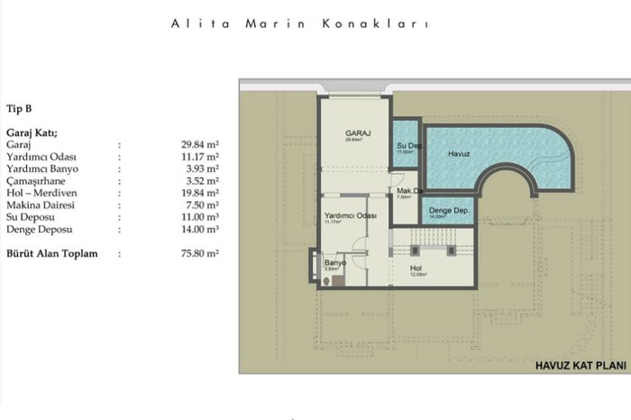 Alita Turizm tarafından inşa edilen Alita Marin Konakları projesi tamamı 4 katlı müstakil villa şeklinde tasarlandı. 4 oda 2 salon şeklinde yapılan projede villaların alanları 408 ile 444 metrekare arasında değişiyor. Bodrum Yalıkavak'ta denizi gören bir yamaçta inşa edilen Alita Marin Konakları, sosyal donatılarıyla dikkat çekiyor. 12 villadan meydana gelen Alita Marin Konakları, dünyaca ünlü restorantlar, mağazalar ve gece kulüplerini barındıran Palmarin Yalıkavak Marina'ya sadece 3 dakikalık yürüyüş mesafesinde yükseliyor. Çağdaş çizgisini Bodrum'a, Akdeniz'e özgü olan ile harmanlamış olan Alita Marin Konakları projesinde Yalıkavak'ın günbatımı evinizin penceresinden izlemek mümkün. Dört katlı olarak tasarlanmış olan müstakil villalar oturum amaçlı tercih ediliyor. HAZİRAN 2015'TE TESLİM Villa fiyatlarının 3 milyon 250 bin dolardan başladığı Alita Marin Konakları projesinde villalar banka kredisine uygun durumda. Genellikle oturum için tercih edilen projenin anahtar teslim tarihi ise Haziran 2015. Alita Marin Konakları Sosyal İmkanları ve Proje Özellikleri : - Açılır-kapanır yüzme havuzu - Deniz manzarası - Güneşlenme terası - Güvenlik - Kameralı güvenlik - Kapalı otopark - Merkezi uydu sistemi - Hidrofor - Jeneratör - Su Deposu - Ankastre beyaz eşya - Balkon - Çamaşır odası - Depo/kiler - Ebeveyn banyosu - Ebeveyn giyinme odası - Isı pay ölçer - İntercom sistemi - Merkezi ısıtma - Merkezi klima - Özel yüzme havuzu (villa için) - Teras - Veranda - Deprem yönetmeliğine uygun - Radye temel - Yalıtım yönetmeliğine uygun - Yapı denetimi yapılmış - Zemin etüdü yapılmış
