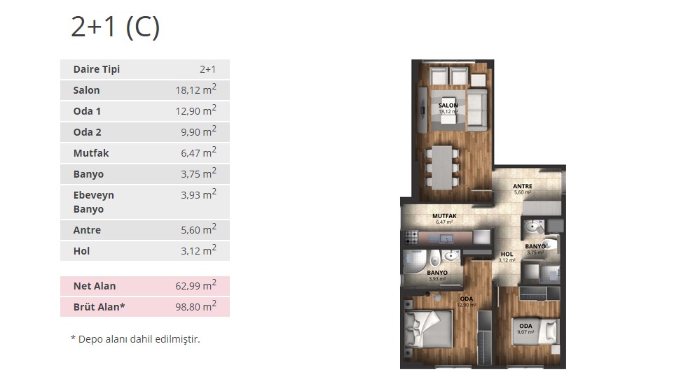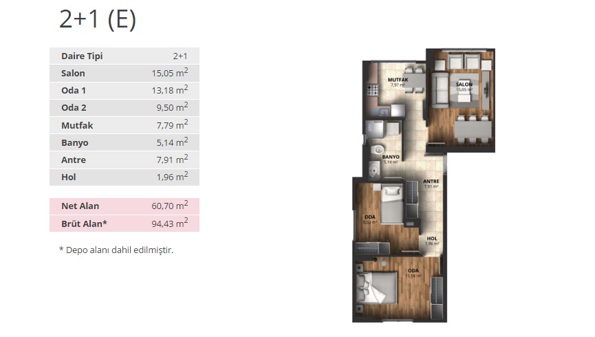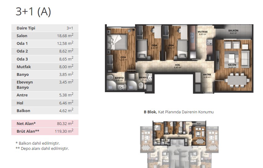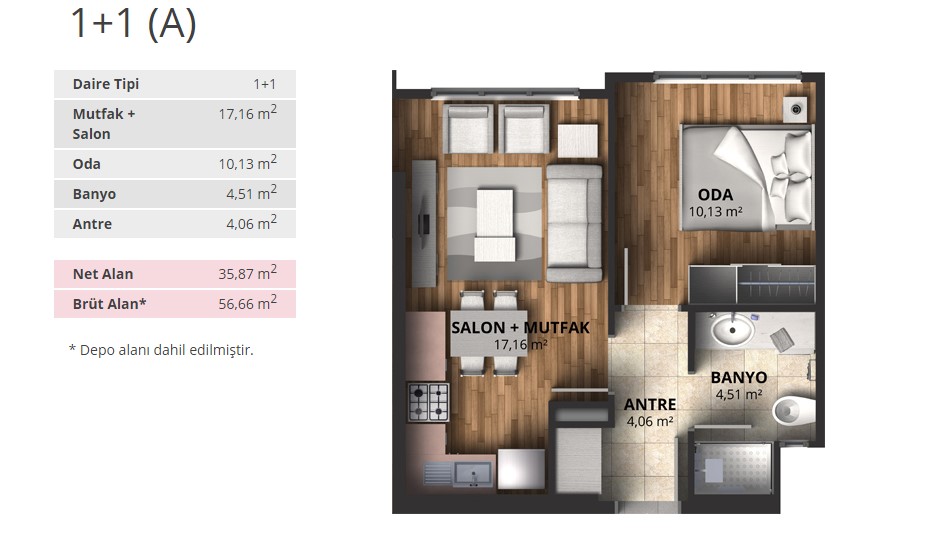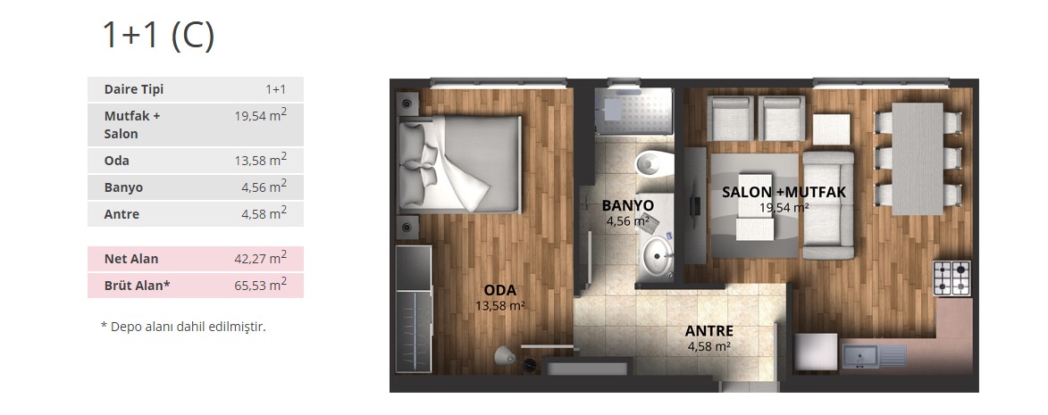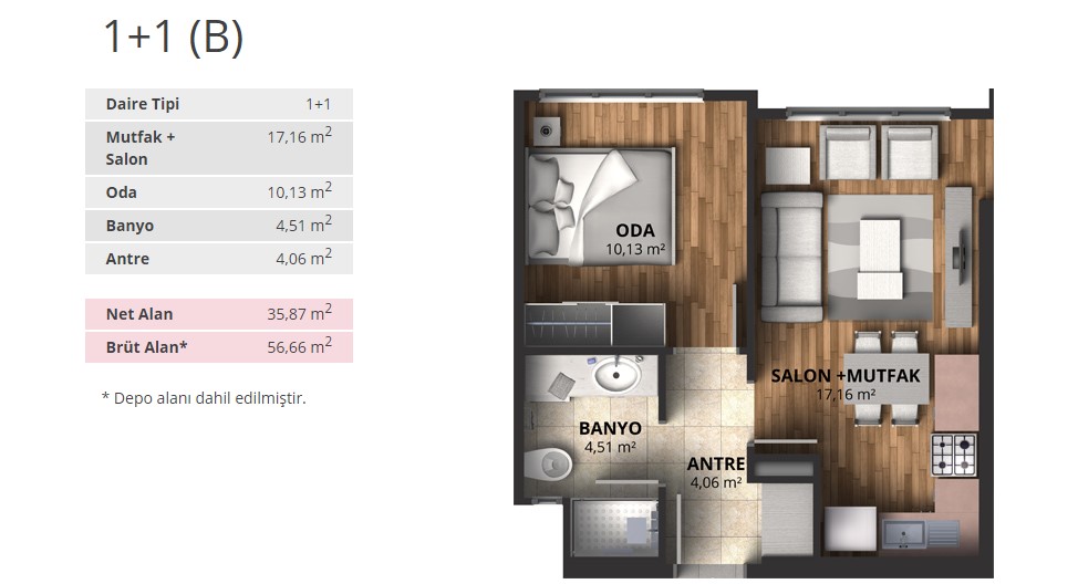 Alpark İstanbul projesinde 1+1 daireler 56,66 ve 65,53 metrekare, 2+1 daireler 88 ila 100 metrekare arasında, 3+1 daireler ise 116 ila 175 metrekare arasında değişen alanlarla dizayn edildi.