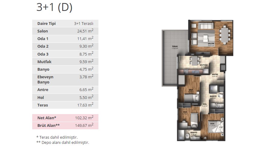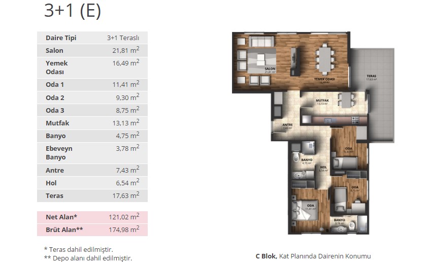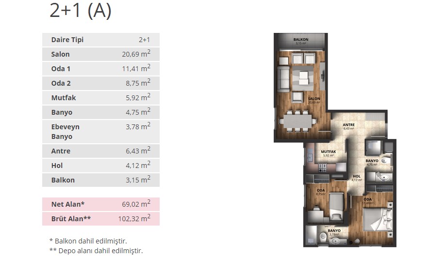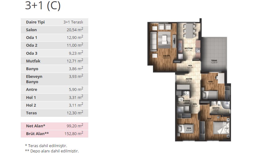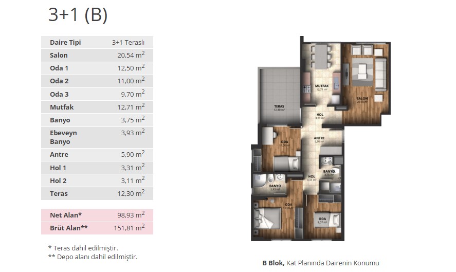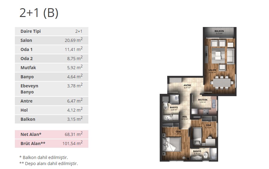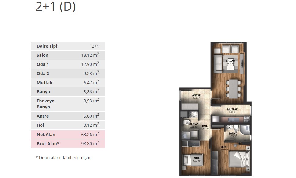 Alpark İstanbul projesinde 1+1 daireler 56,66 ve 65,53 metrekare, 2+1 daireler 88 ila 100 metrekare arasında, 3+1 daireler ise 116 ila 175 metrekare arasında değişen alanlarla dizayn edildi.