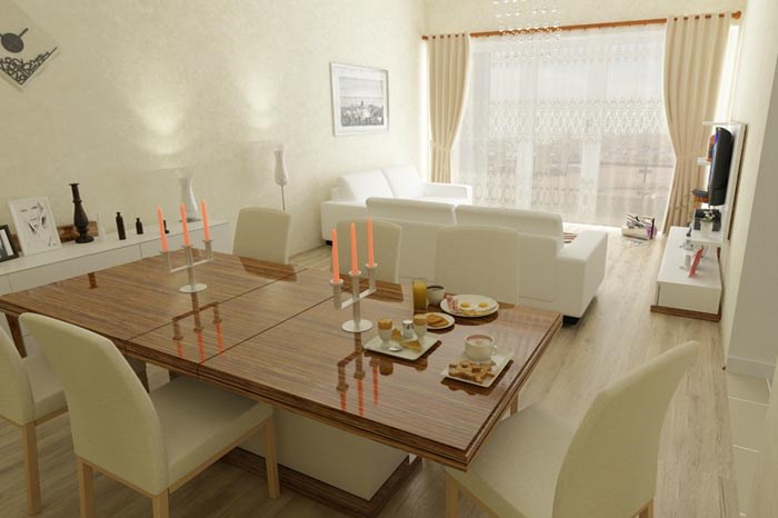 3 oda 1 salon daireler : 495 bin lira ile 530 bin lira arasında değişen ve