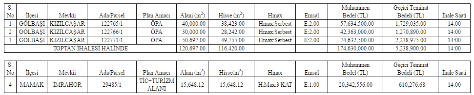 - Ankara Büyükşehir Belediyesi'nden Satılık 8 Arsa