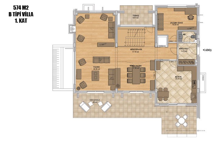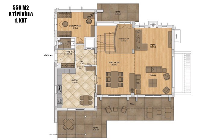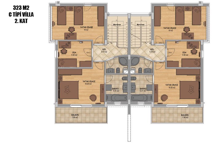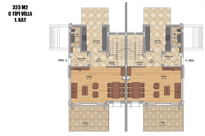 41 bin 60 metrekare inşaat alanı üzerinde inşa edilen Antriva Evleri projesinde 3 farklı tipte villa seçeneği yer alıyor. 569 metrekare alana sahip olan A tipi villalar ve 574 metrekare alana sahip olan B tipi villalar müstakil villa olarak yükseliyor. 323 metrekarelik C tipi villalar ise ikiz villa olarak tasarlandı.
