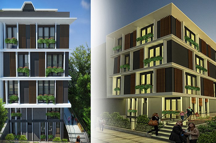 - Apartist Levent 12 projesi, 5 katlı tek blok olarak tasarlandı.