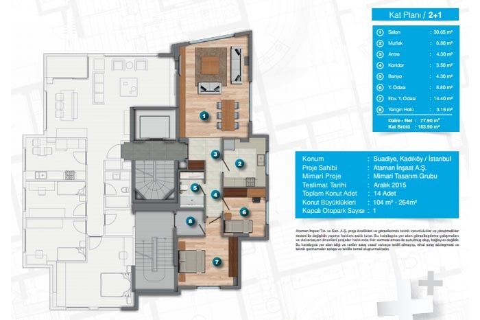 Teslimlerin 2016 yılının Kasım ayında yapılması planlanan Ataman Taç projesi Kadıköy sahiline çok yakın mesafede konumlanıyor. Projenin üst katındaki daireler deniz manzarasına hakim olurken aynı zamanda terasda küçük bir havuz bulunuyor.