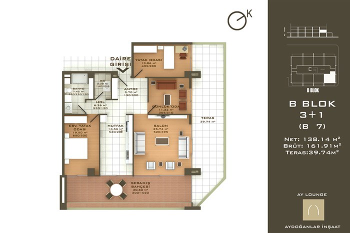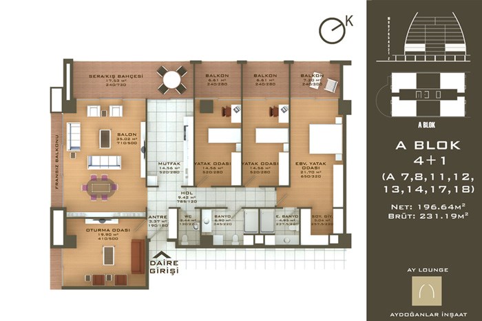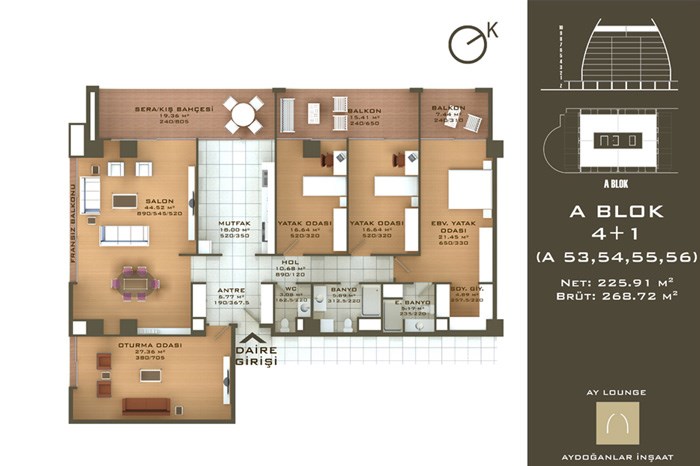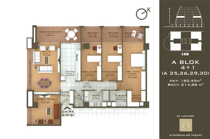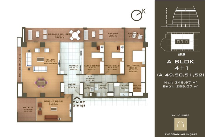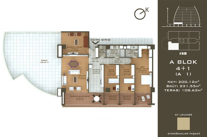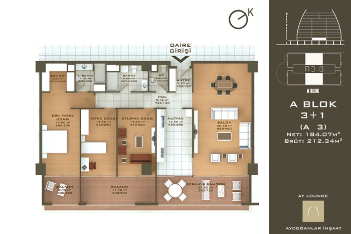 Eskişehir, Atatürk Bulvarı'nda Aydoğanlar İnşaat tarafından 26 bin 884 metrekarelik alanda 72 konut kapasitesi ile inşa edilen Ay Lounge projesinde büyüklükleri 123 ile 285 metrekare arasında değişen 2 oda 1 salon, 3 oda 1 salon ve 4 oda 1 salon konut tipi seçenekleri sunuluyor.