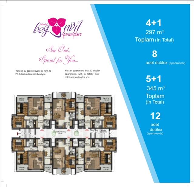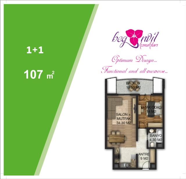 Begonvil Konakları Beylikdüzü projesinde 78 adet 1 oda 1 salon, 144 adet 2 oda 1 salon, 576 adet 3 oda 1 salon ve 60 adet dubleks daire bulunuyor. Begonvil Konakları projesinde 1 oda 1 salon daireler 107 metrekare, 2 oda 1 salon daireler 170 metrekare, 3 oda 1 salon daireler 193 metrekare, 4 oda 1 salon daireler 297 metrekare, 5 oda 1 salon daireler ise 345 metrekare büyüklüklerle dizayn edildi.