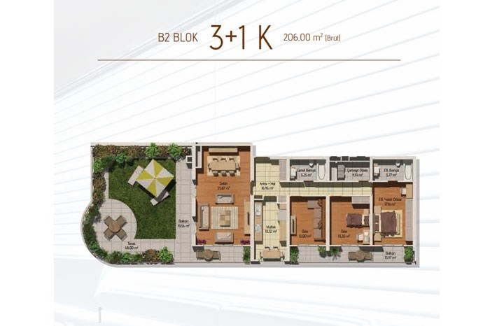 - Şimdiden yoğun talep alan projenin teras evleri büyük ilgi görüyor.