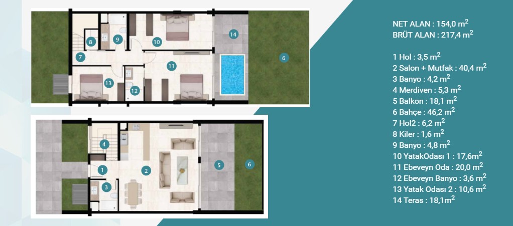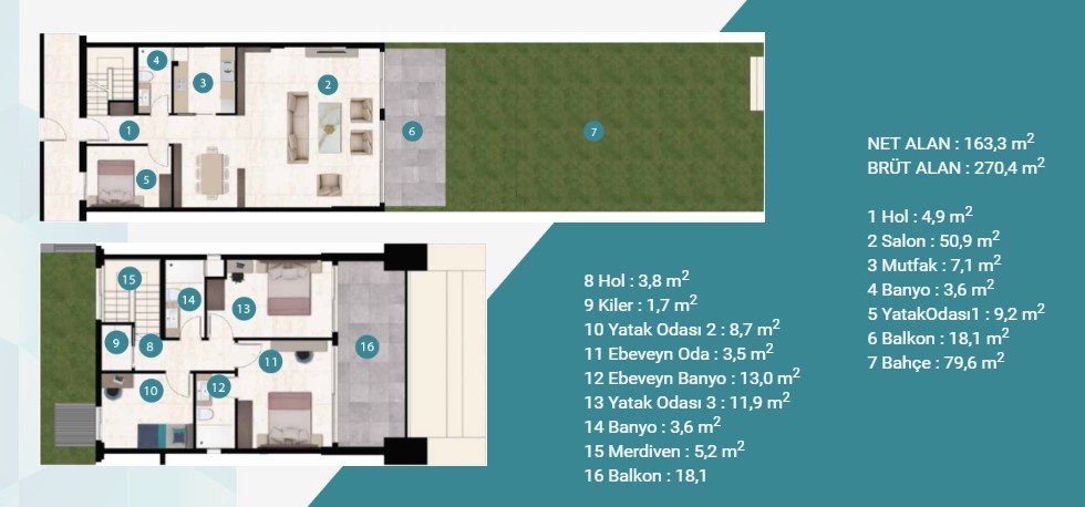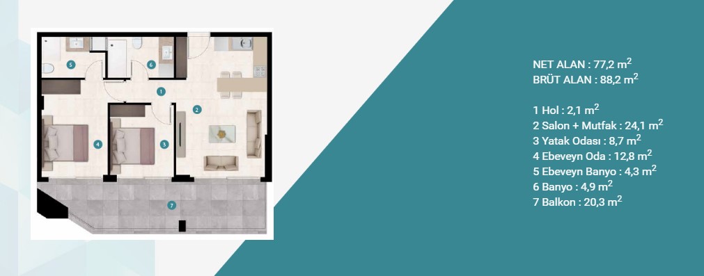 B Life Çeşme projesinde 1+1 daireler brüt 77 ila 122, net 54 ila 84 metrekare, 2+1 daireler brüt 83 ila 88, net 71 ila 77 metrekare, 3+1 dubleksler brüt 217, net 154 metrekare, 4+1 dubleksler brüt 270, net 163 metrekare büyüklüklerle dizayn edildi.