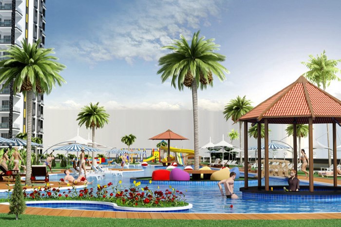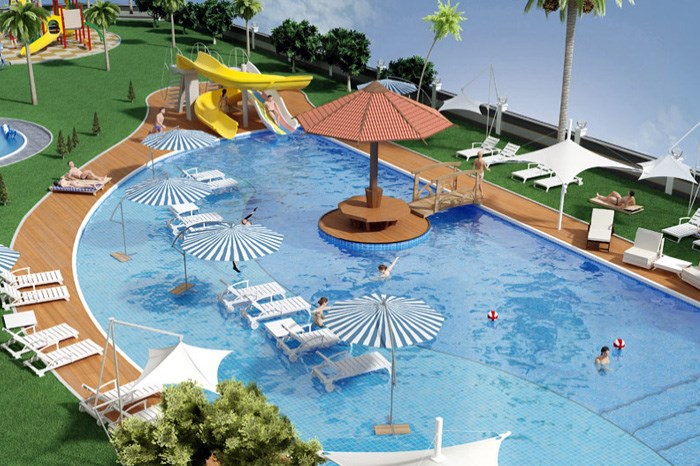 - Projede yüzme havuzlarında aqua park ve çocuklar için çeşitli oyuncaklar yer alıyor.