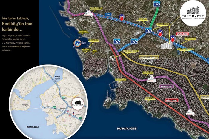 - İstanbul’un tam kalbinde, yeni açılacak Avrasya Tüneli’nin çıkış noktasında yer alan Businist Office projesi E-5'e cepheli konumuyla dikkat çekiyor.