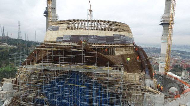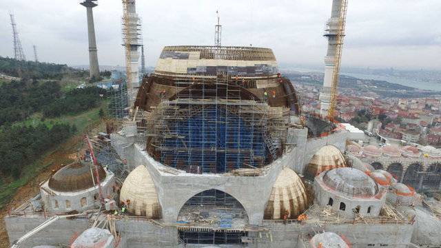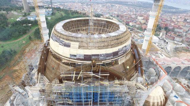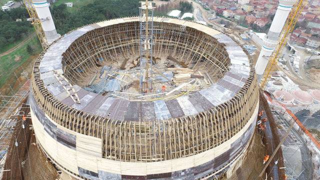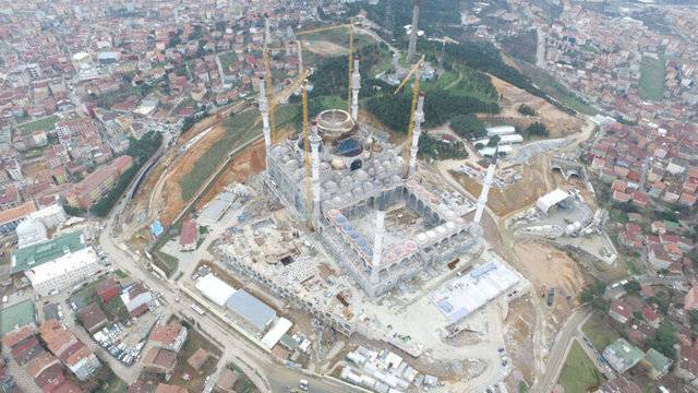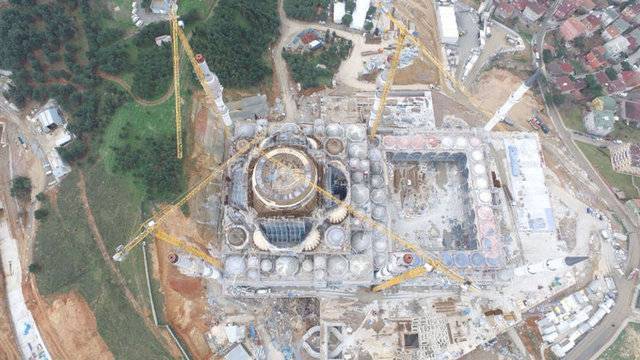 Yaklaşık 125 bin metrekare alan üzerinde yapım çalışmaları devam eden caminin dev kubbesinin yapımı da devam ediyor. Tamamlandığında 72 metre yüksekliğe ve 35 metrelik çapa sahip olacak dev kubbenin önümüzdeki hafta tamamlanması hedefleniyor.