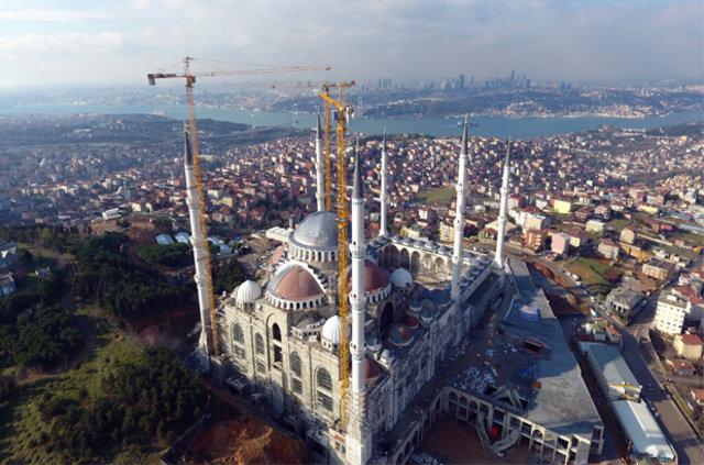 6 minareli Çamlıca Cami'de minarelerin tamamı inşa edildi. Kaba inşaatı tamamlanan caminin avlusunda da çalışmalar devam ediyor. Cumhuriyet tarihinin en büyük camisi olan Çamlıca Cami tamamlandığında 37 bin 500 kişi aynı anda ibadet edebilecek.