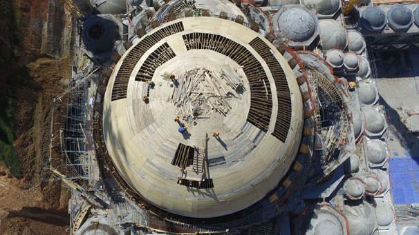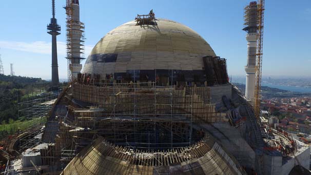 İnşaatın en önemli aşamalarından olan 72 metrelik dev kubbenin üzeri kapatıldı. Demir bağlama işlemleri tamamlandıktan sonra kubbenin beton dökme işlemine başlanacak. Böylece caminin kaba inşaatı bitmiş olacak.