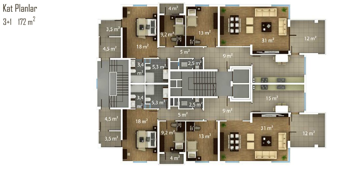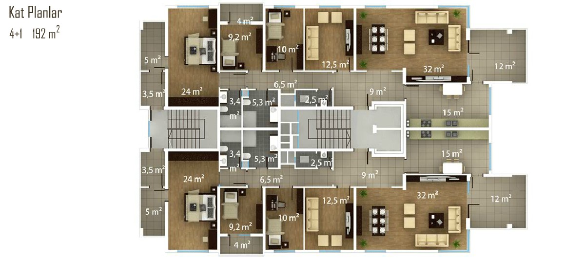 Park Beşirli projesindeki konutların tamamı 200 metrekare büyüklüğünde 4+1 tipinde dizayn ediliyor.