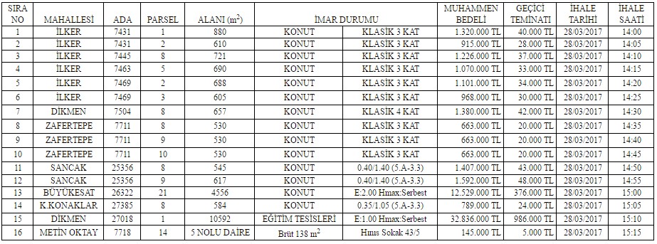 - Çankaya Belediyesi'nden Satılık 16 Arsa!