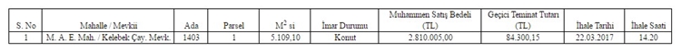 İhale 22 Mart Çarşamba günü saat 14:20'de, Çiftlikköy Belediyesi Hizmet Binası, Encümen Salonunda yapılacak.