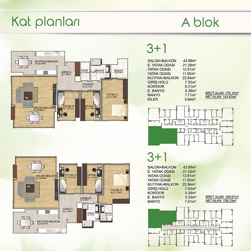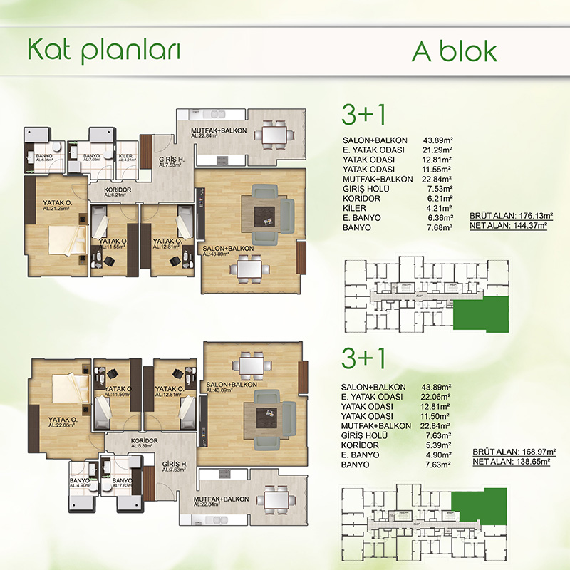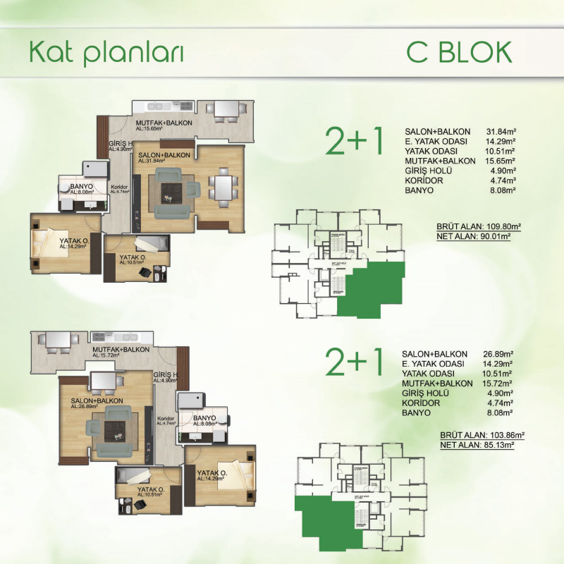 Toplam 162 konuttan meydana gelen Çınar 6 Evleri projesinde 2 oda 1 salon ve 3 oda 1 salon daire seçenekleri yer alıyor. Projede 2+1 daireler brüt 103 ila 120, net 85 ila 99 metrekare, 3+1 daireler brüt 139 ila 176 metrekare, net 114 ila 144 metrekare büyüklüklerle tasarlandı.