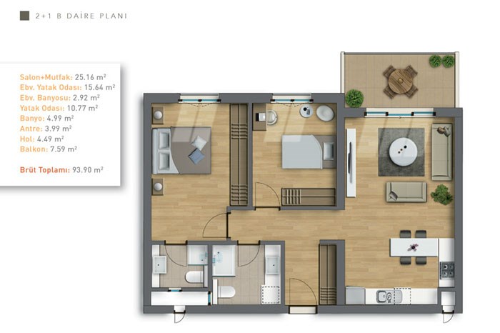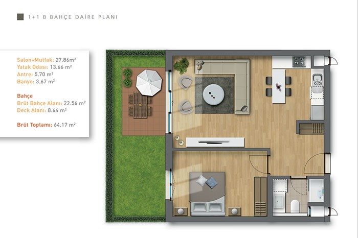 Tuzla Çınarlı Bahçe projesinde alanları 58,02 ila 211,82 metrekare arasında değişen 1+1, 1,5+1, 2+1, 3+1, 3+1 dubleks, 4+1 ve bahçe katı daire seçenekleri yer alıyor.