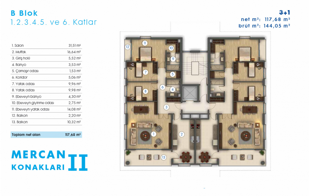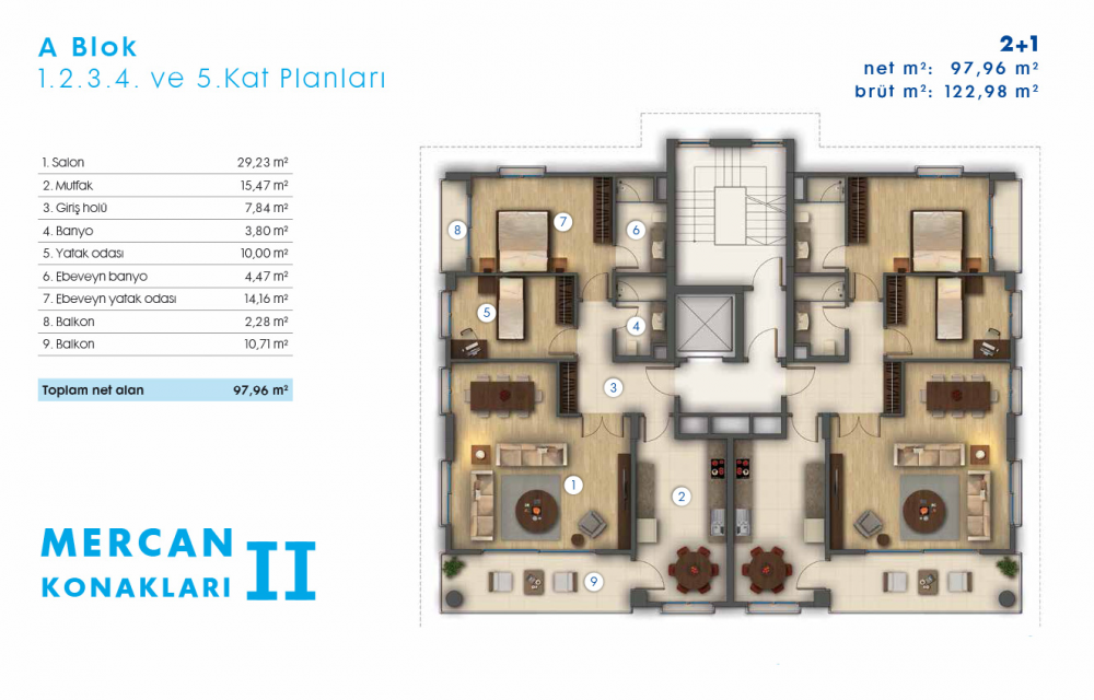 Deniz İstanbul Mercan Konakları 2. etap ise 60 bin metrekare alan üzerinde yükseliyor. 5 ve 8 kat arasında değişen blokların yer aldığı Deniz İstanbul Mercan Konakları 2. etap toplam 719 adet konuttan meydana geliyor. 1+1'den 4+1'e kadar daire seçeneklerinin yer aldığı Deniz İstanbul Mercan Konakları 2. etap teslimleri ise Kasım 2017 olarak belirlendi.