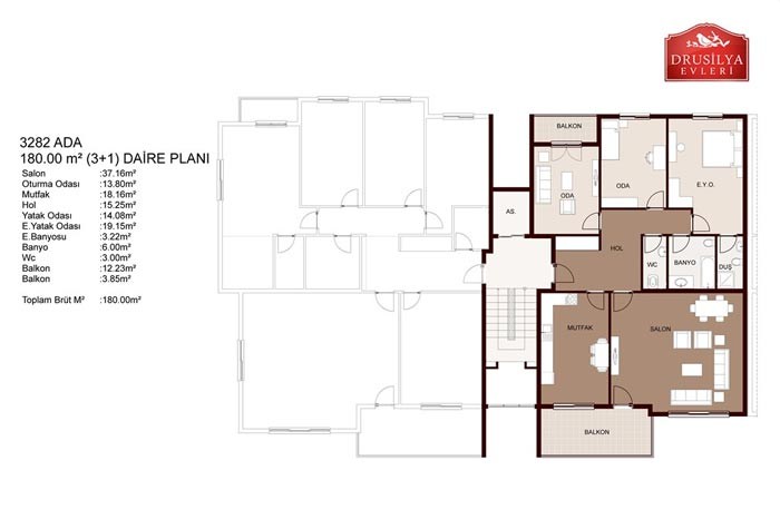 Drusilya Evleri Projesi Kat Planı ve Kroki Görselleri :