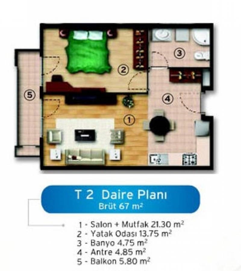 Dumankaya Trend projesinde 1 oda 1 salon daireler 65, 67 ve 82 metrekare, 2 oda 1 salon daireler 102, 103 ve 104 metrekare, 3 oda 1 salon daireler 137, 143 ve 151 metrekare alanlarla dizayn edildi.