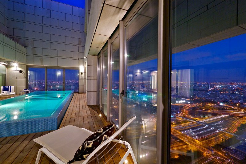 Mimar Alexandre Girald tasarlanan penthouseun içmimarisi Alberto Pinto Agency imzası taşıyor. Panoramik Monaco manzarasına sahip olan penhouseun 2 adet yüzme havuzu bulunuyor. Havuzlardan biri içeride diğeri ise terasta yer alıyor.