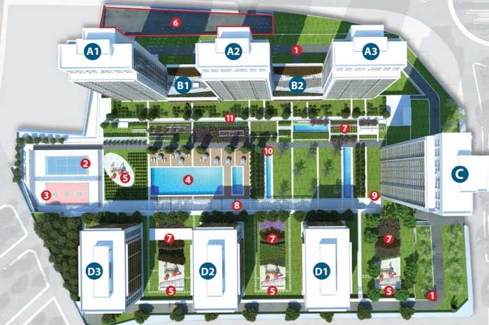 - Her zevke ve ihtiyaca yanıt verecek şekilde tasarlanan proje, 4, 8, 20 ve 30 katlı bloklarda oluşuyor.