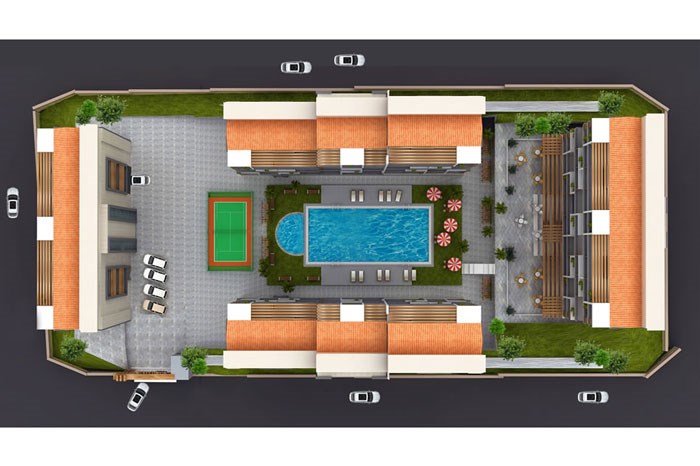 - Proje geniş sosyal alanlarıyla dikkat çekiyor : Yüzme havuzu, tenis kortu, Türk hamamı, saunası, kapalı otoparkı, çocuk oyun alanları, kütüphanesi, Fitness, ses ve ısı yalıtım sistemleri, 24 saat güvenliği ile inşa edildiği bölgede standartların üzerinde bir proje olarak öne çıkıyor.