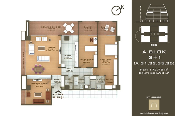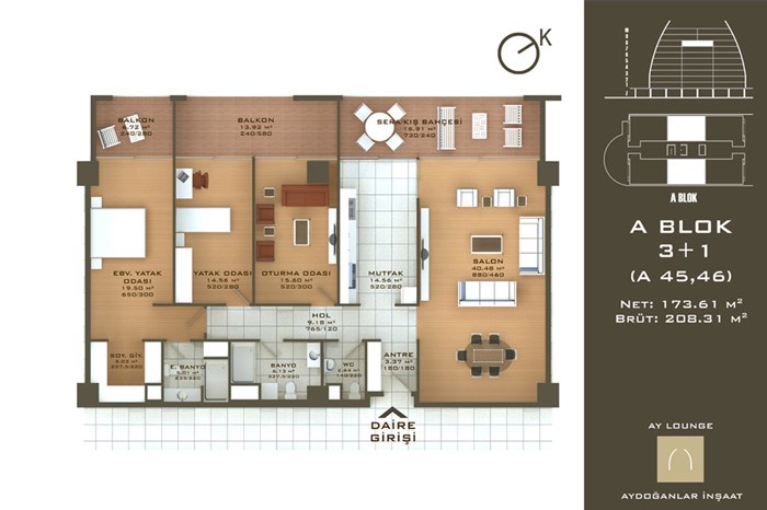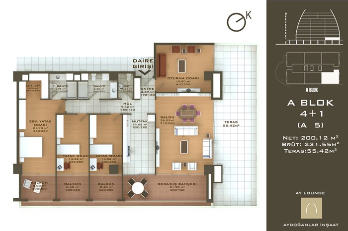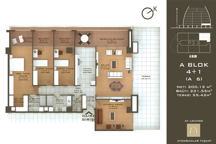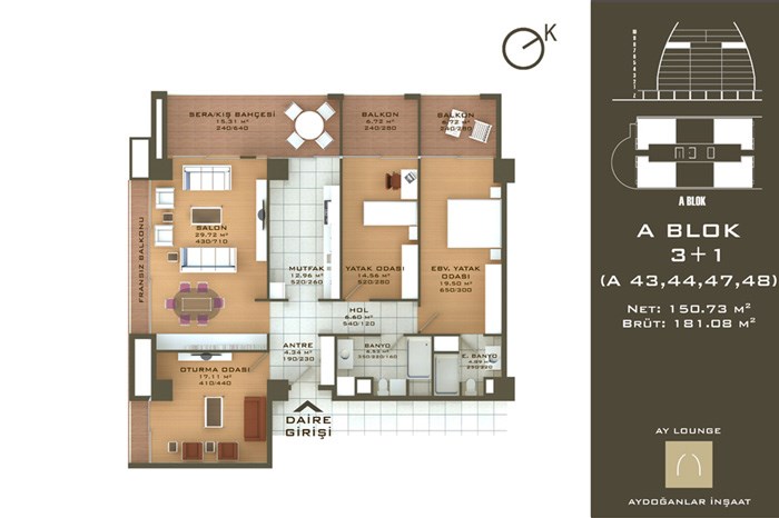 Ay Lounge Projesi Kat Planı ve Kroki Görselleri :