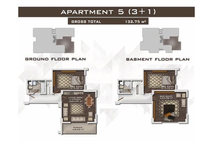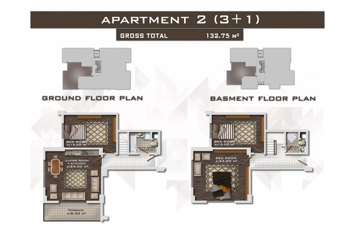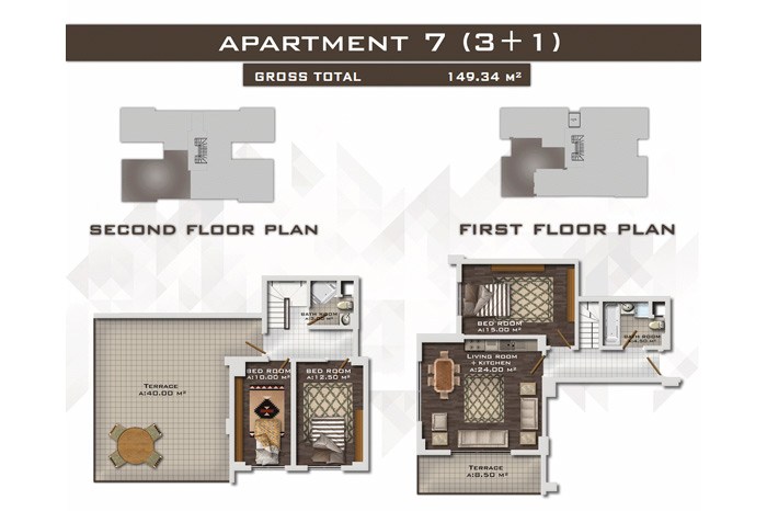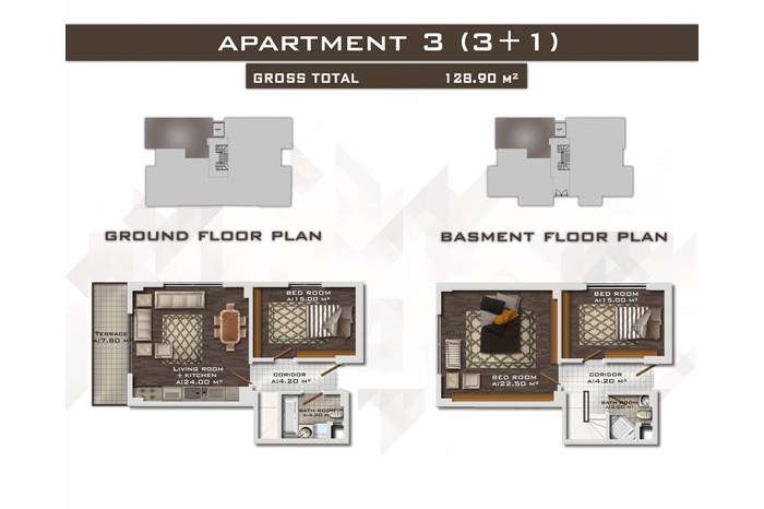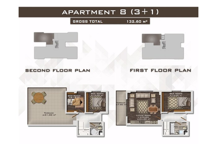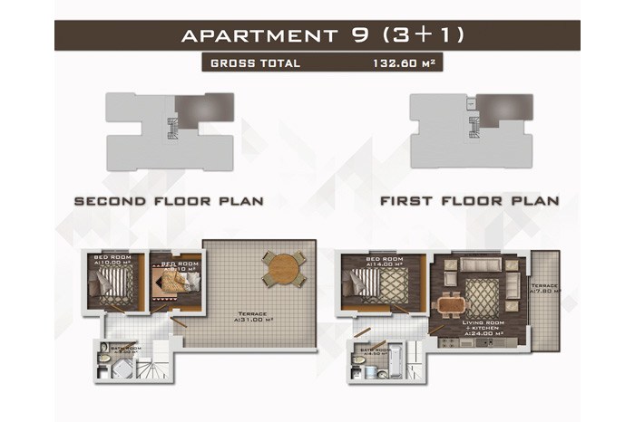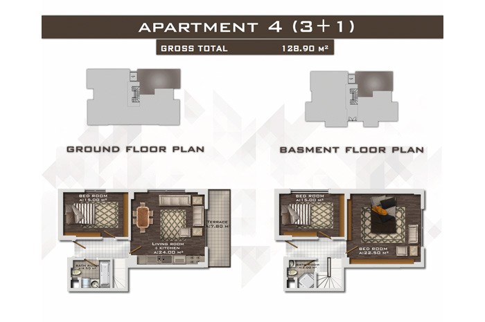-128 ile 149 metrekare arası büyüklükte 3+1 daireler bulunuyor.