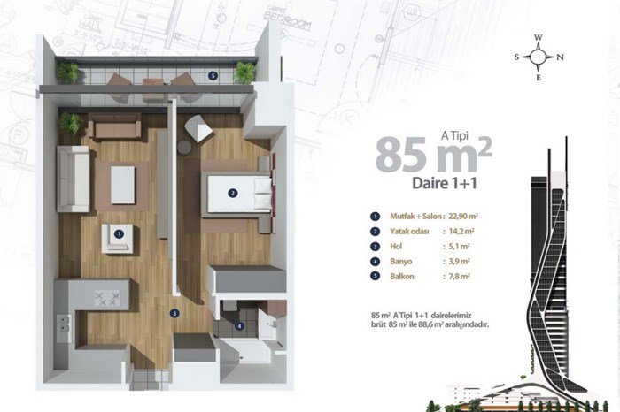 200 metre yükseliğiyle İzmir'in en yüksek, Avrupa'nın 5., Türkiye'nin en yüksek 2. ikiz kulesi ünvanını taşıyan Folkart Towers projesi 300 adet rezidans daire, ofis ve 32 adet çarşı mağazasından meydana geliyor. Projede konutlar 8. ile 17. katlar arasında, ofisler ise 18. ile 40. katlar arasında yer alıyor.