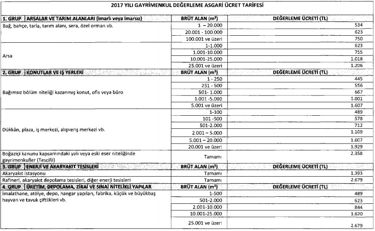 - Gayrimenkul Değerleme Asgari Ücret Tarifesi 2017 Belli Oldu