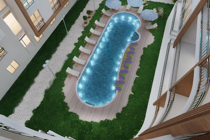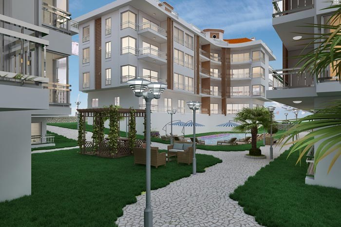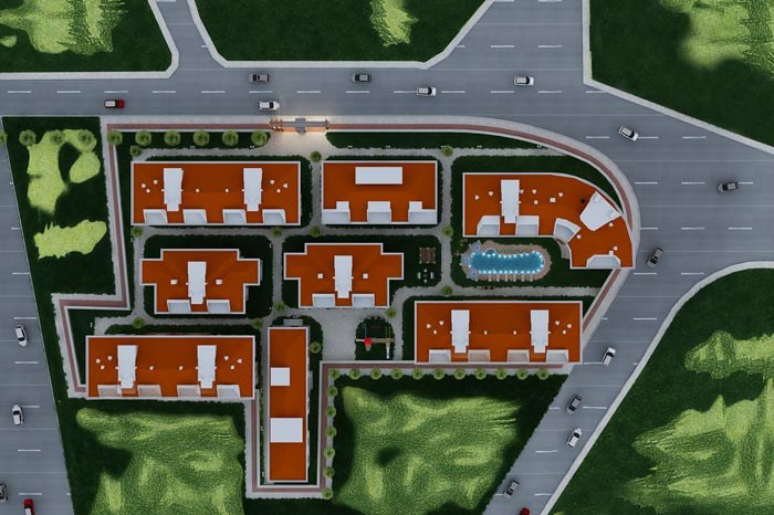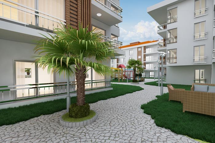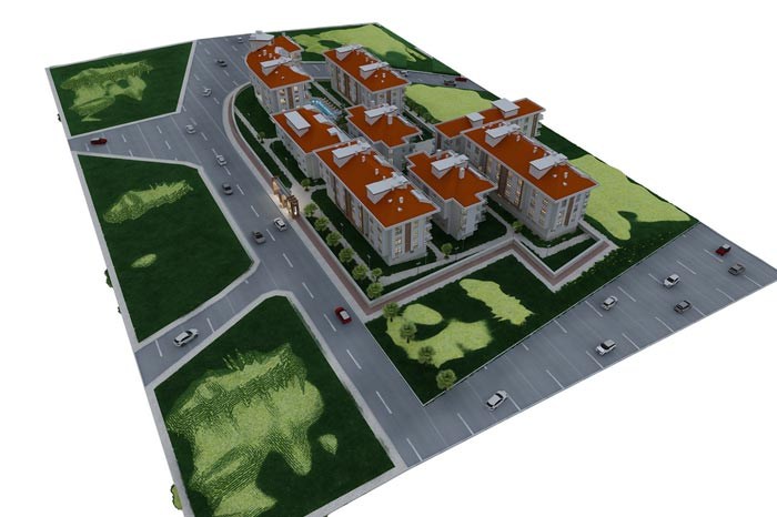 - 4 bin 500 metrekarelik yürüyüş ve peyzaj alanı bulunan projede 8 blokta 104 daire bulunuyor.