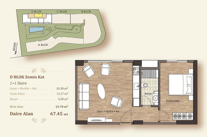1 oda 1 salon daireler : 195 bin 600 lira ile 263 bin 900 lira arasında değişen,