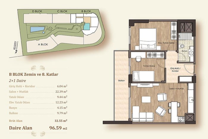 - Projede stüdyo daireler 71 metrekare, 1 oda 1 salon daireler 65 ila 75 metrekare, 2 oda 1 salon daireler 91 ila 137 metrekare, 3 oda 1 salon daireler 154 ila 191 metrekare olarak tasarlandı.