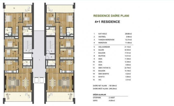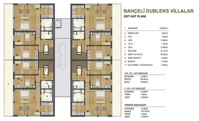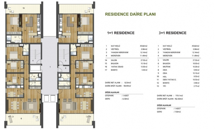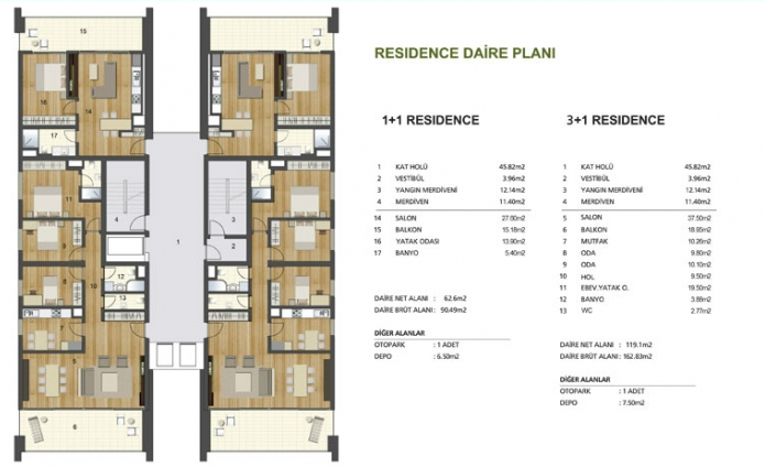 Bu üç konsept kapsamında projede 2 zemin+17 katlı 2 rezidans bloğu, 4 katlı 6 bahçe dubleksi bloğu ve üç katlı ticari blok yer alıyor. Projje toplam 146 adet konut ve 6 bin 890 metrekare ticari alandan meydana geliyor.