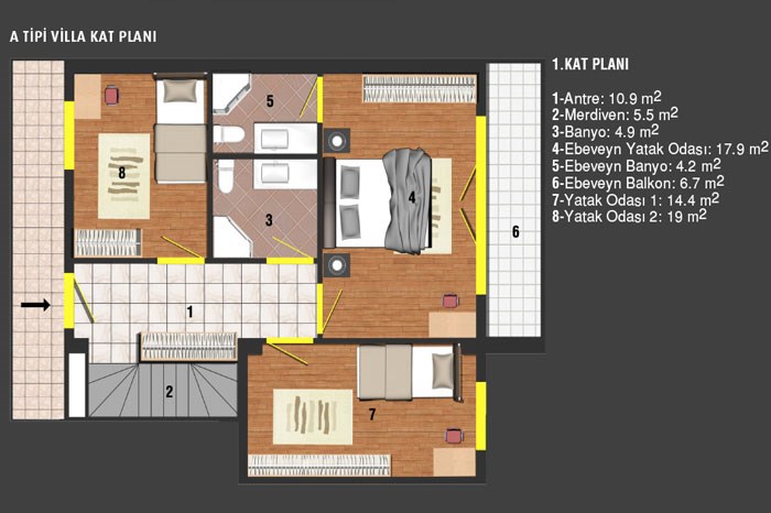 Adora Villaları Projesi Kat Planı ve Kroki Görselleri :