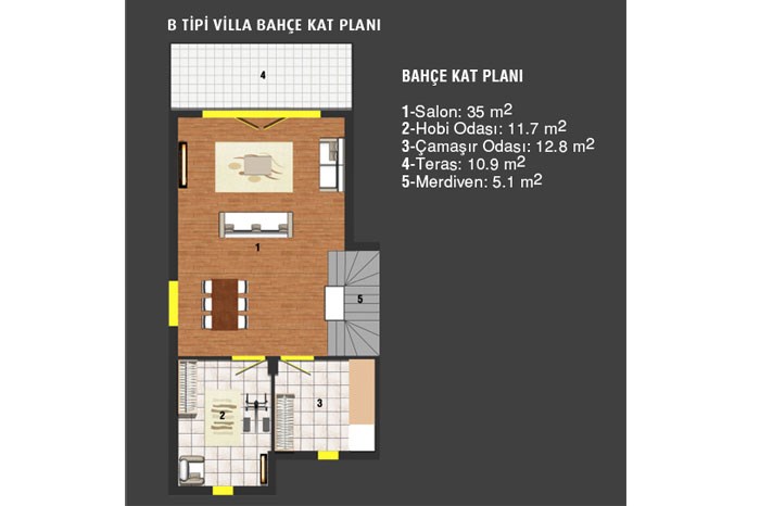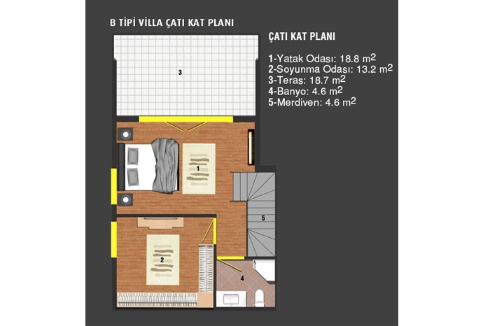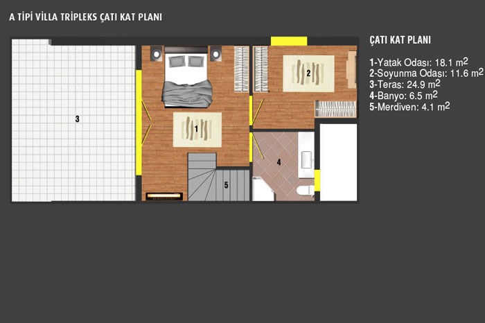 - Projede çatı dubleksi, bahçe dubleksi, tripleks ve fourleks konut tipleri yer alıyor.