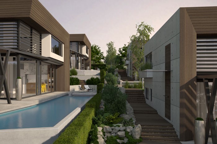 - Her villanın kendine ait yüzme havuzu da bulunuyor.