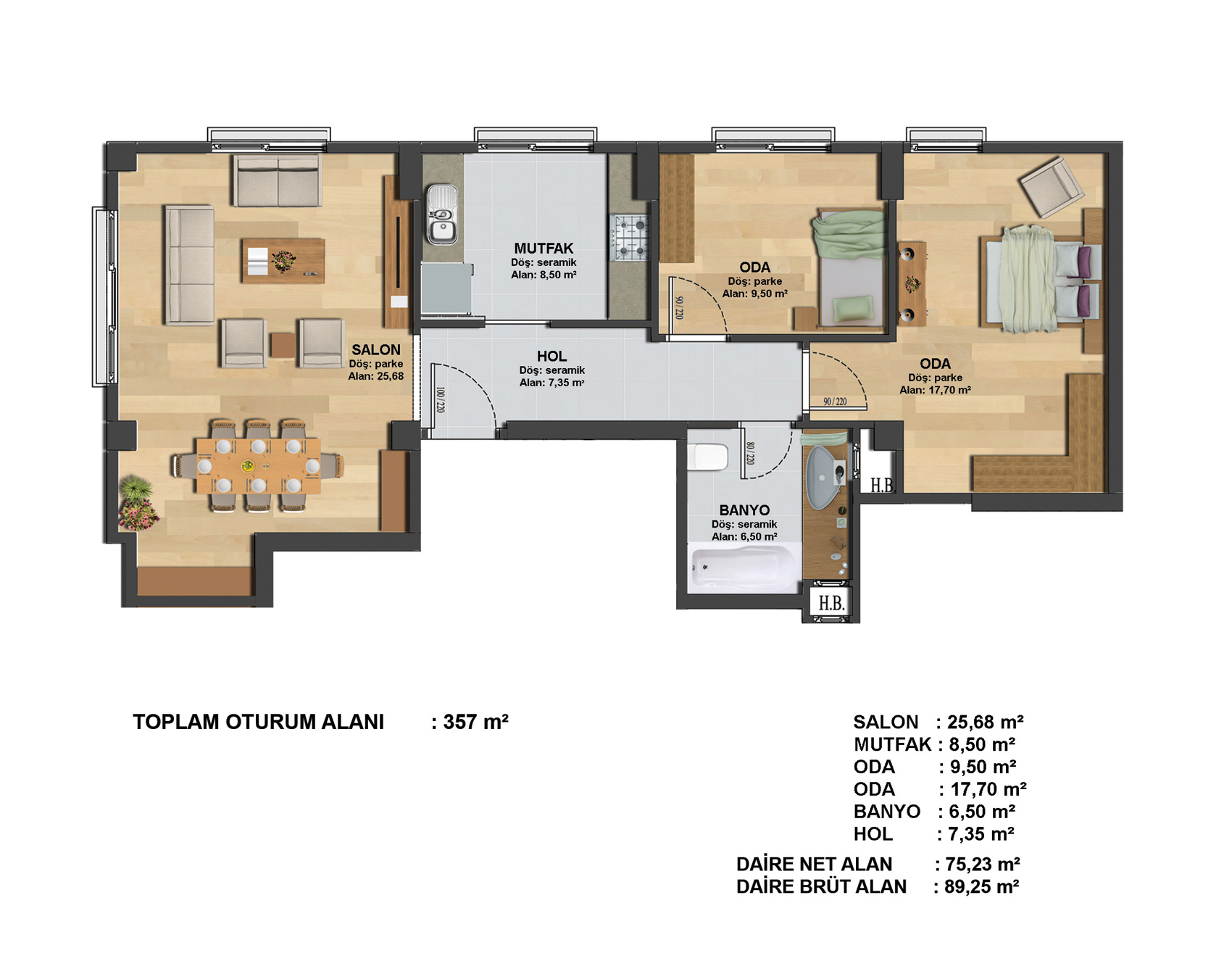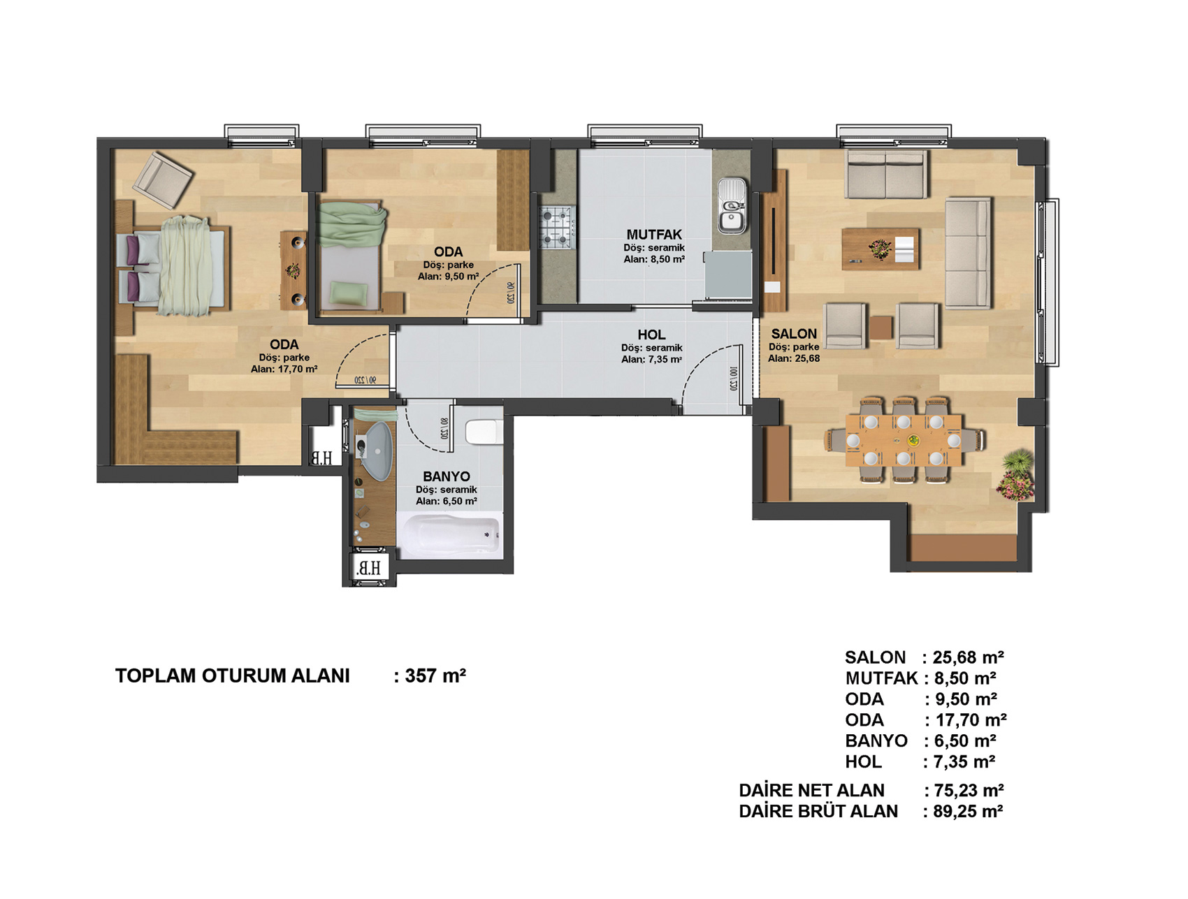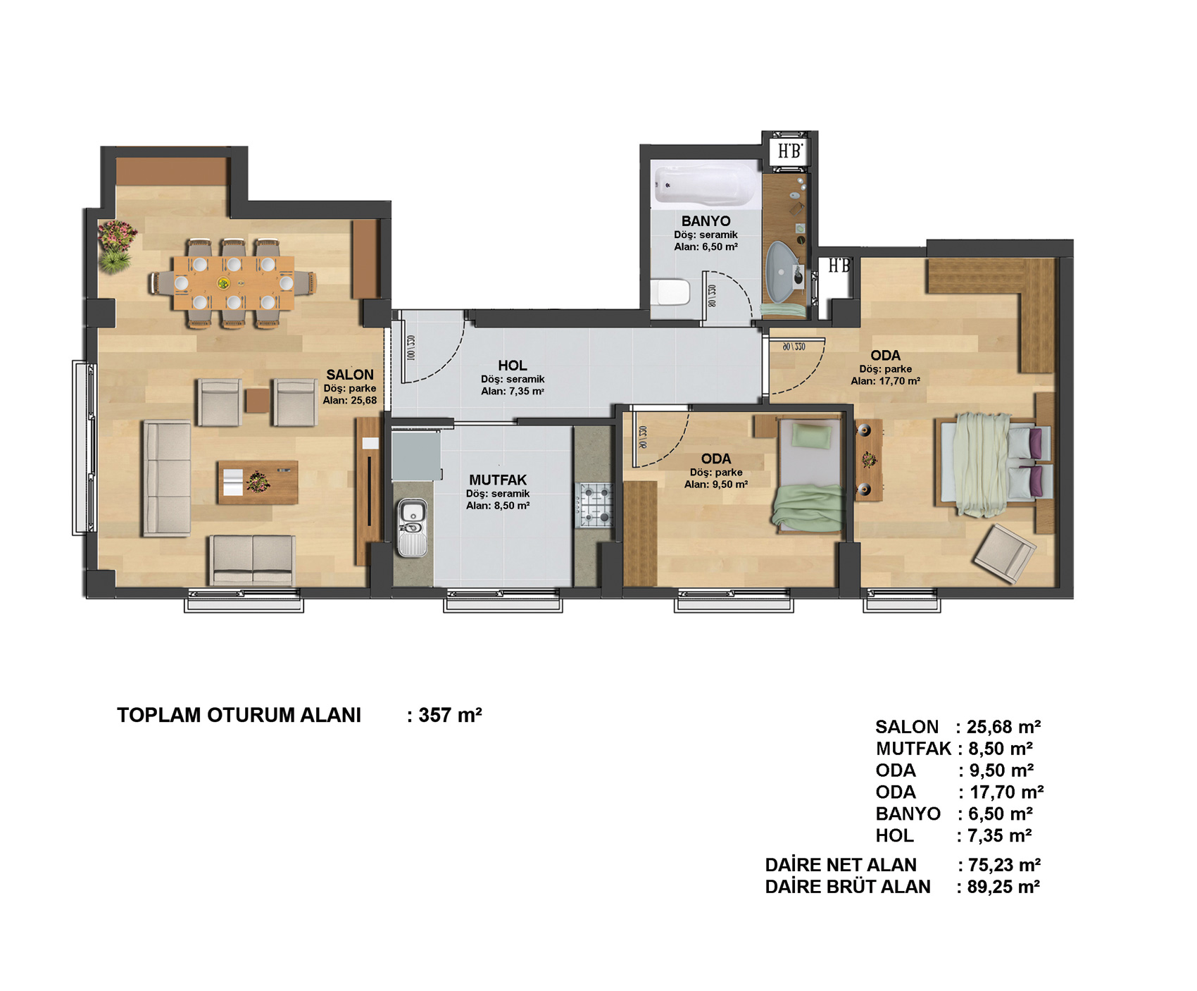 Tamamı 72 metrekare '+1 daire tiplerinden oluşan proje 14 katlı tek bloktan meydana geliyor, yüzde 30 peşinat ve kalanı 40 ay vadeli ödeme seçeneği sunuluyor.