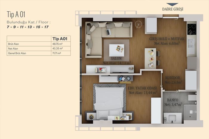 Alya Life Residence Projesi Kat Planı ve Kroki Görselleri :