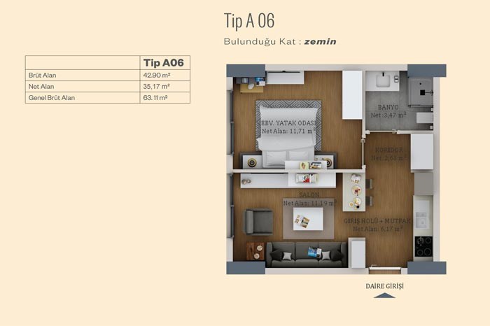 1 oda 1 salon daireler : 490 bin liradan başlayan,