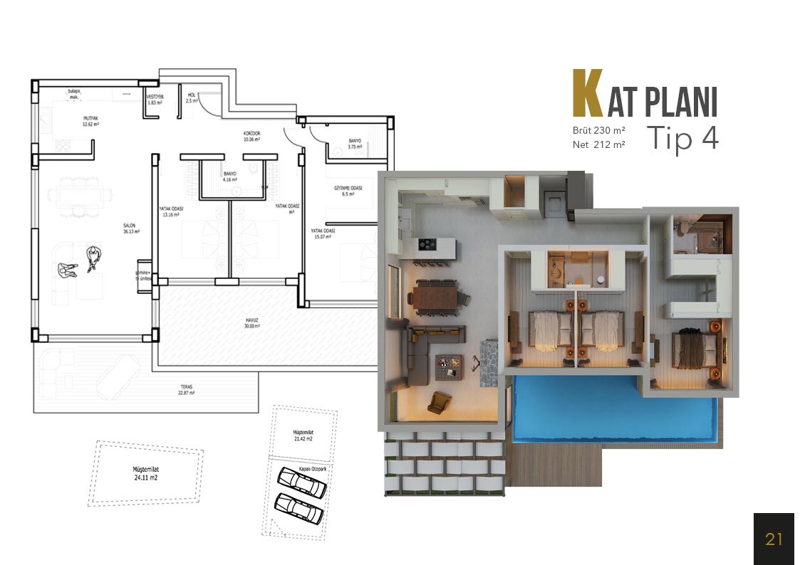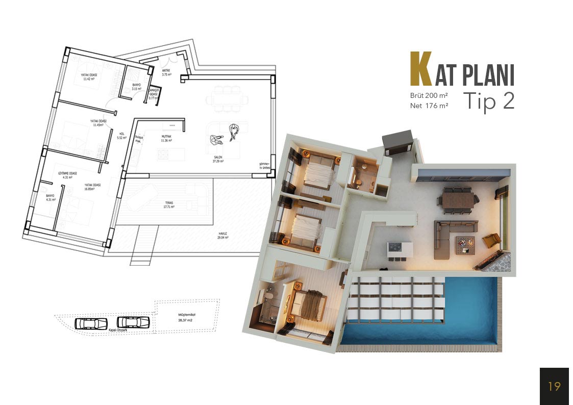 Akıllı ev sistemleriyle donatılan Ariva Yaka 2 projesinde villalar 3 oda 1 salon ve 4 oda 1 salon şeklinde tasarlandı. 3+1 villalar 200 metrekare, 4+1 villalar ise 230 ila 264 metrekare büyüklüklerle dizayn edildi.