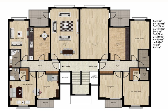 Bağçeşme Modern Projesi Kat Planı ve Kroki Görselleri :