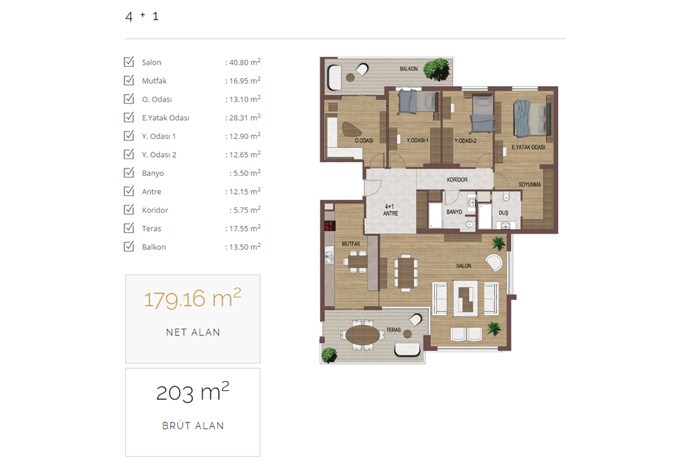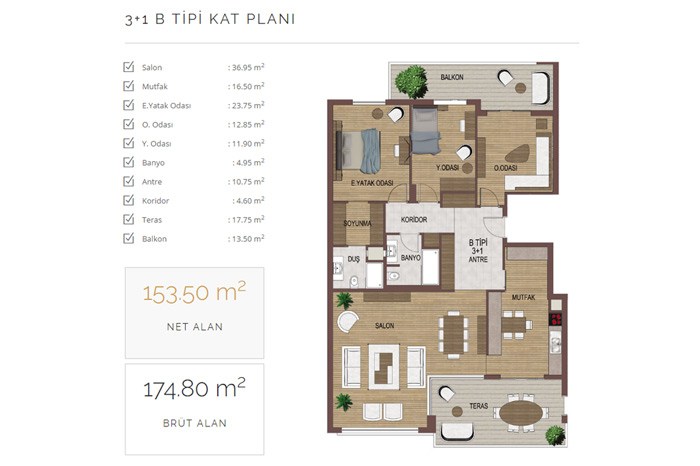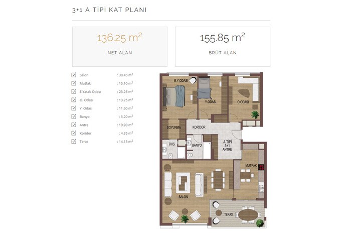 Beysu Evleri projesi 29 bin metrekarelik arsa alanı üzerinde yükseliyor. Projedeki daireler 2+1, 3+1, 4+1 ve 5+1 olmak üzere 4 farklı tipte dizayn edilmiş. Daire ölçüleri brüt 105 metrekare ile 353 metrekare arasında arasında değişiyor.